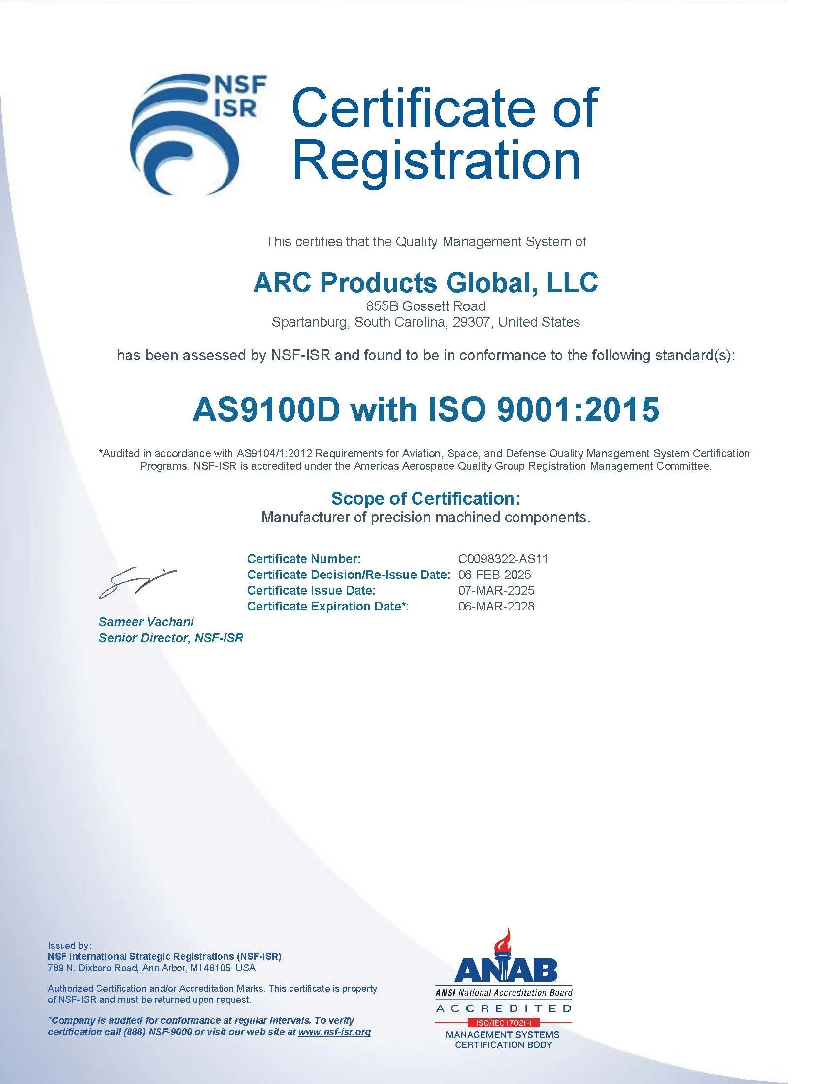 AS9100D Certificate of Registration